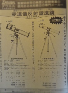 中学生の当時にもSELESTRONなど海外メーカーからカセグレン系が輸入発売されていましたが高価でした。