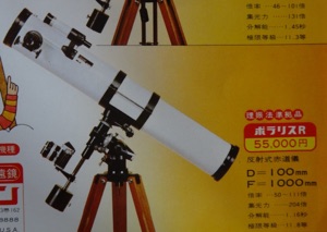 中学生の時初めて買った望遠鏡がΦ100mmX1000mmのニュートン式望遠鏡でした