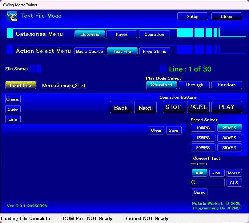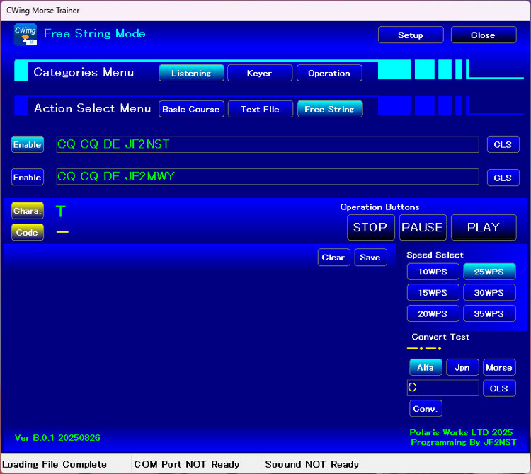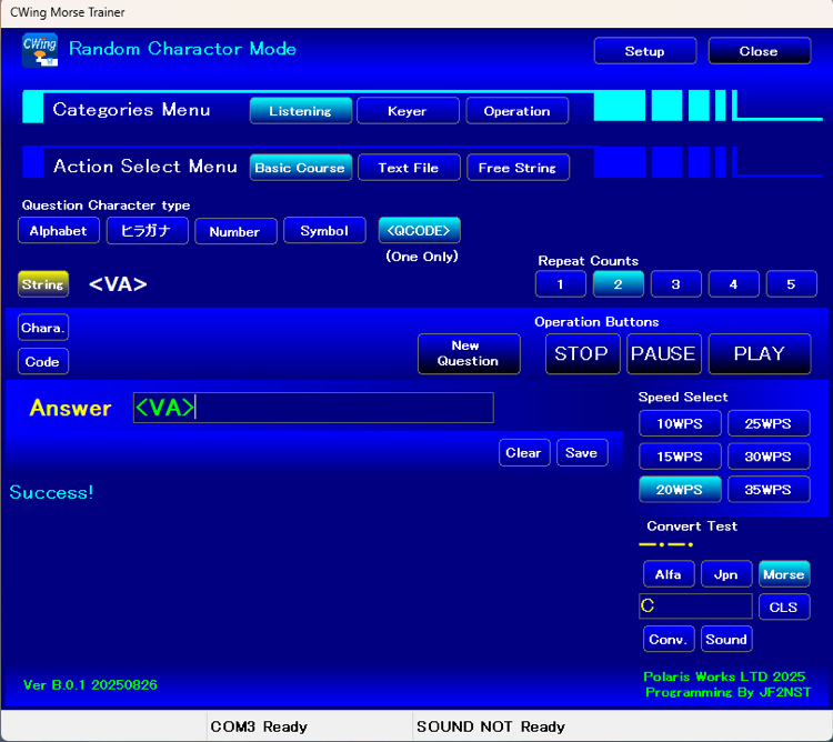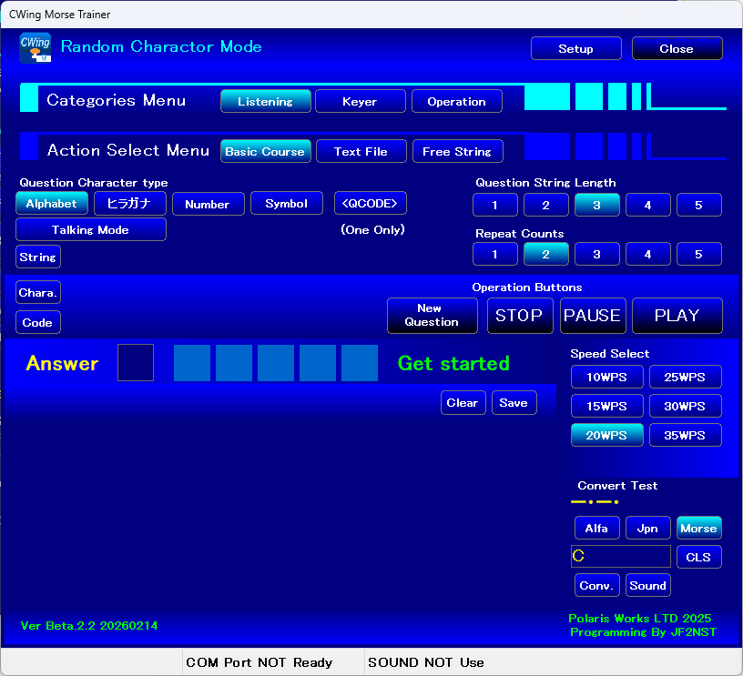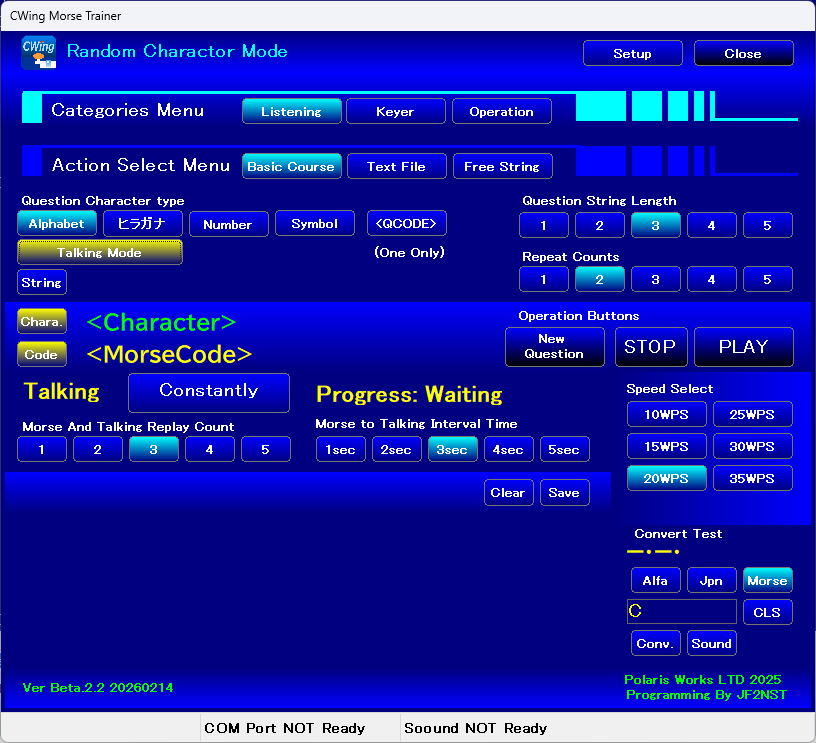 モールス音とキャラクタ発声音を繰り返し聴き込む学習ができます。(Talking Mode)