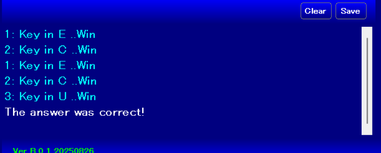 文字数全部の合致が得られれば”The answer was correct!”と表示します。