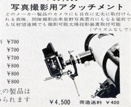 大昔の天文ガイドに3B社から発売されていたカメラアダプタ(アタッチメント)の広告発見