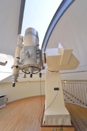 屋上には開閉式の天体ドームがあり200mm屈折式望遠鏡が設置